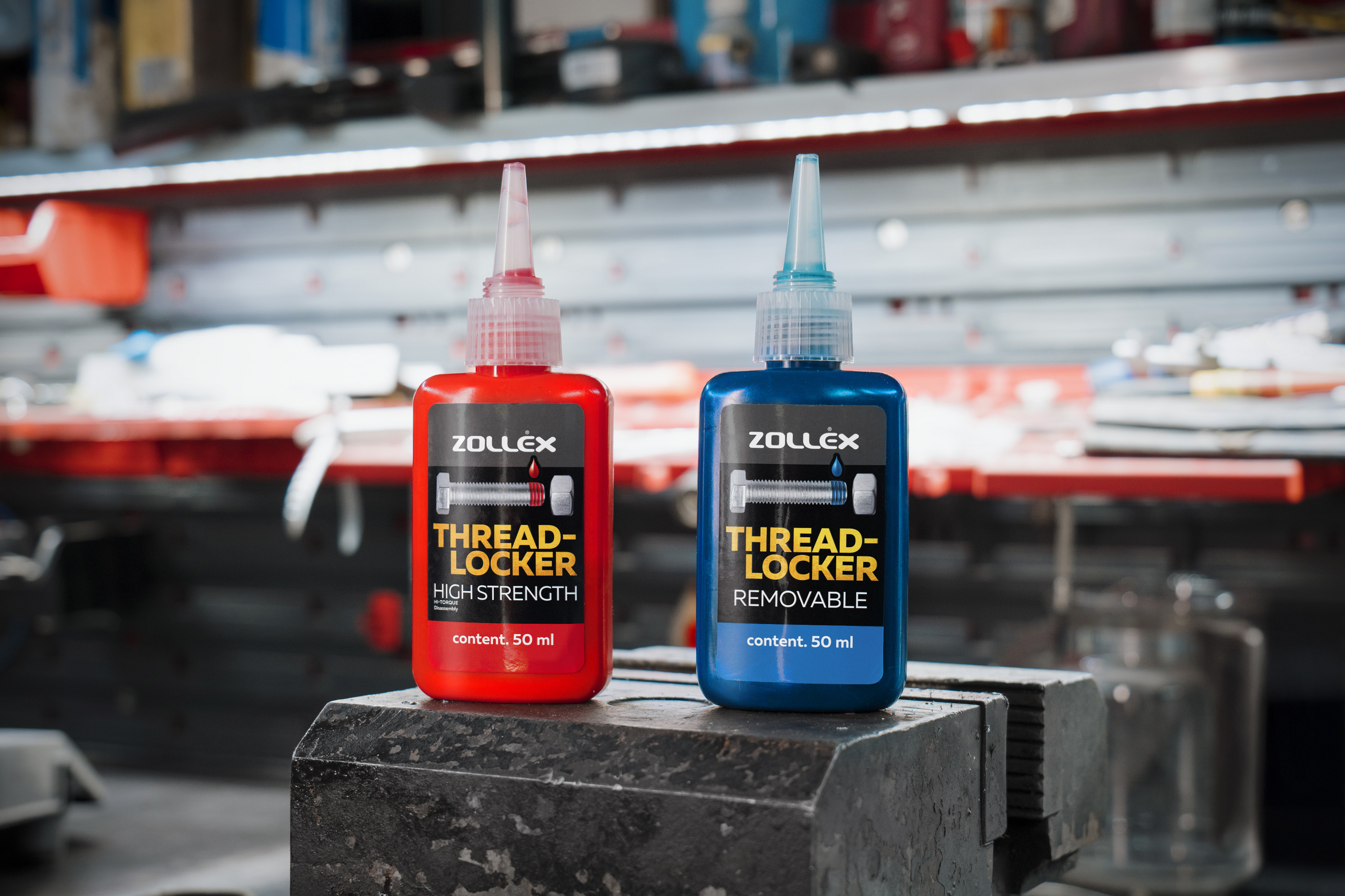 Високоміцний (червоний) фіксатор різьби для застосувань, що вимагають максимальної фіксації на кріпленнях 6–22 мм. Червоні фіксатори різьби Zollex затвердівають за 24 години і доступні як у рідкій, так і в напівтвердій формі стержня. Для розбирання може знадобитися локальне нагрівання вище 260°C і видалення, поки ще тепле.