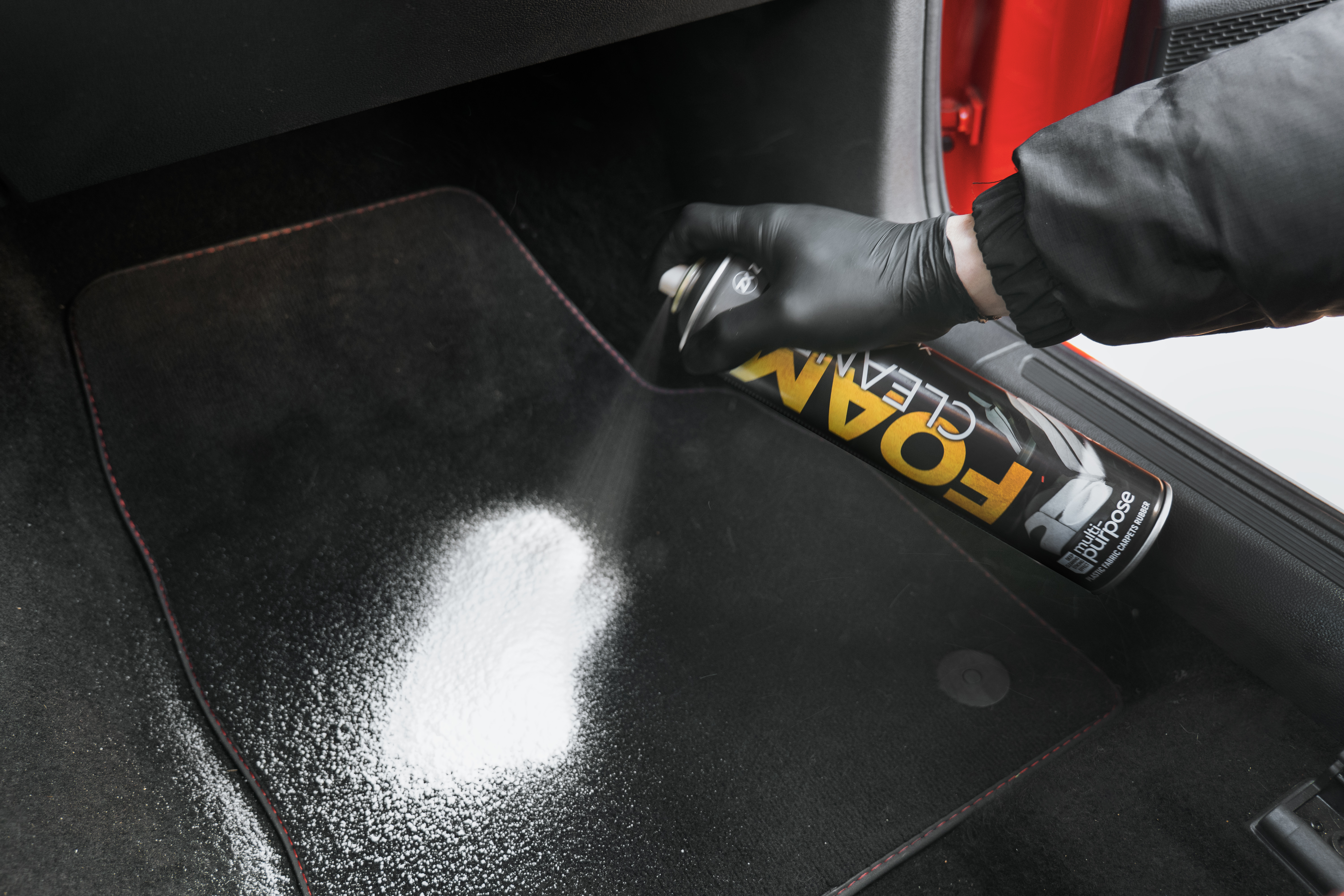 - Безпечний для використання на тканині, килимах, алькантарі, стелях та пластику